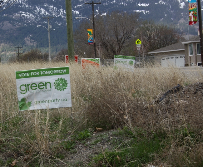 4th place in sign contest April 12, 2011 Final entrant in the Election sweepstakes. The Green Party mounts a campaign. Three weeks to voting day Monday May 2nd.