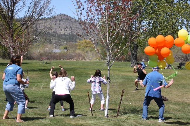 Hot dogs, balloons, and people getting into the exercise mode with Jorg Mardian. Speaker of the Legislature, Bill Barisoff chats with friends Tara and Ron Hovanes.