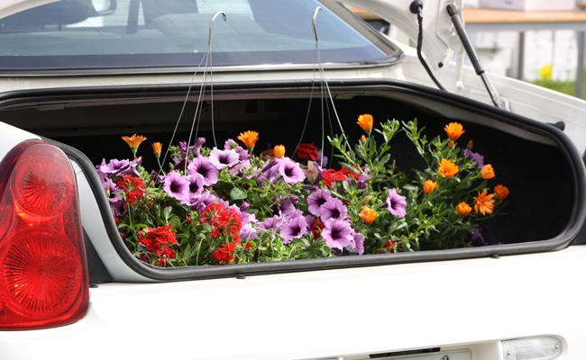 At the high school – customers lined up to get frozen meat products along with hanging baskets for another season of outdoor beauty. All pre-ordered at SOSS.