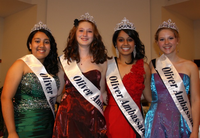 Four out of eight ladies chosen to represent the Community of Oliver for 2011-2012. Judged best to represent the community (l to r) Gagan Ganger, Sierra Hammond, Loveneet (Nikki) Brar and Carly Craik.