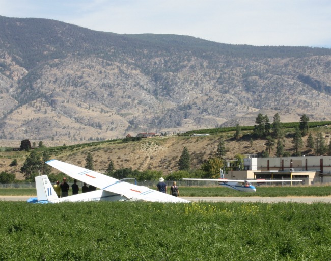 Close encounter September 6, 2011 Nice landing. And the picture just before. Air cadets training in gliders at Oliver Monday.
