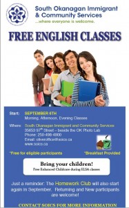 South Okanagan Immigrant & Community Services in Oliver, requires immediately childminding staff for It’s English Language Services to Adults Program. Full specialized training will be given on working with immigrant children.