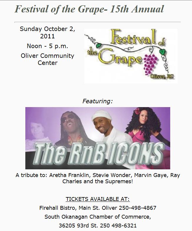 Sunday and don’t miss the large art show September 27, 2011 Take advantage of a great weekend of music, art and vino. The Oliver Community Arts Council presents Fall Art Show and Sale on Saturday and Sunday. Sunday only entertainment outside in the park with Festival of the Grape. Don’t miss it.