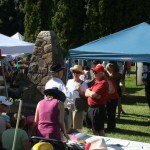 Tom Siddon talks to Vaseux Lake residents Diane and Ron Worth at West Fest in Okanagan Falls Saturday. Siddon, a former federal cabinet minister wants to replace the retiring Bill Schwarz on the Regional District Board. Election is November 19th.