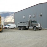 Paul Johnson works on parking lot outside new Transwest Helicopters building in Oliver. According to the building developer Paul Dumoret – the Chilliwack operation has closed and employees are now moving in all maintenance equipment to the Oliver site. More work installing offices is yet to be complete but the heavy work is now done.
