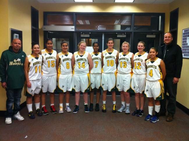 Tied at 54 with seconds left, a quick steal, a solid defensive stand and the final score ended —— 58-57 for the “South Okanagan never die Hornets”, had the girls jumping in elation .
