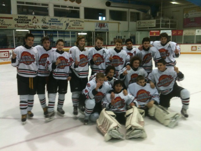 South Okanagan Bantam Reps win the OMAHA league banner.