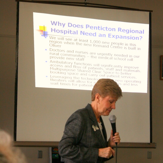 Speaking in Oliver at a Kiwanis lunch – Perrino says the need for improvements to the Penticton Hospital are greater now than in the past with the new corrections facility being built north of Oliver. Janice Perrino says the RDOS will grow by 1500 people once the facility is finished. Penticton Hospital is old and needs modernization and deserves more support from government – no matter which party is in power.