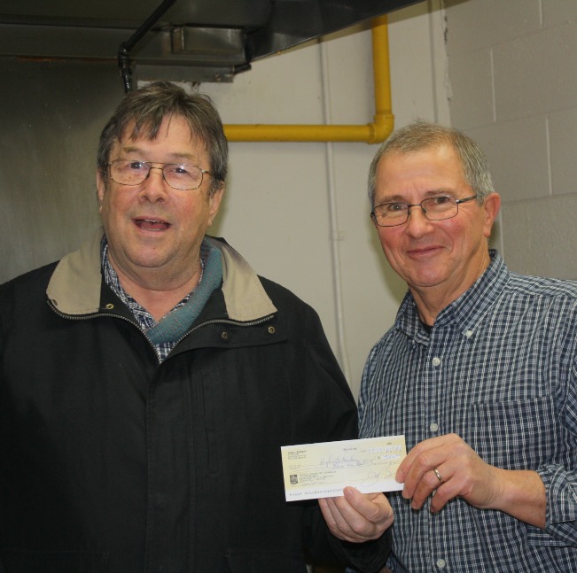 ODN Publisher Jack Bennest hands over a cheque in the amount of $500 to Ernie Dumais of Highway to Healing – a local organization assisting with transportation costs when a family needs help with a sick child.