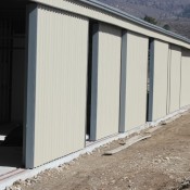 Thanks to 3 Bar Construction and Paul Dumoret for his assistance. Heavy weight doors to each bay can be opened with a the pressure of a finger. On a rail system. Press to make larger Hangars owned by Vic Seder at the Oliver Municipal Airport