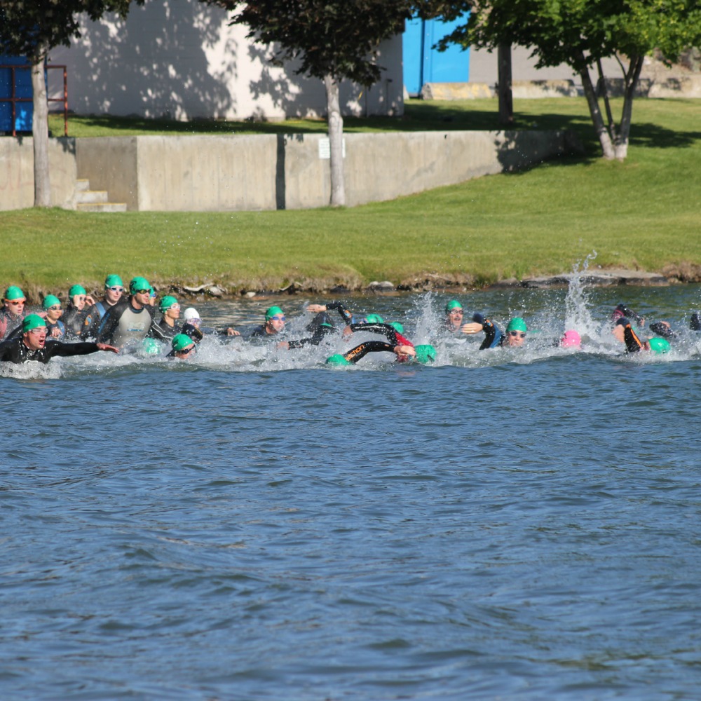 Sprint smaller – cool north wind May 31, 2014 They’re off – Saturday race About 50 persons braved the cool wind for a dip at Rotary Beach. Leader below. Wine Capital of Canada Triathlon (Sprint) – precedes Sunday’s Half Iron