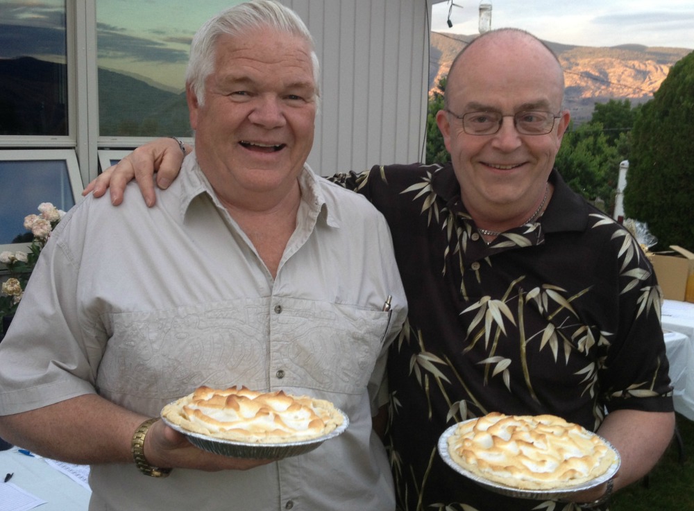 Curly and Moe June 7, 2014 First names only please Bandai Fundraiser on the west bench last night Would have loved to be there for what happened next with those pies!!
