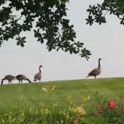 This picture is not Rotary Beach but the flock was nearby. Major job to clean up the new underwater weeds and the Canada Goose poop in addition to some green slime and white foam.