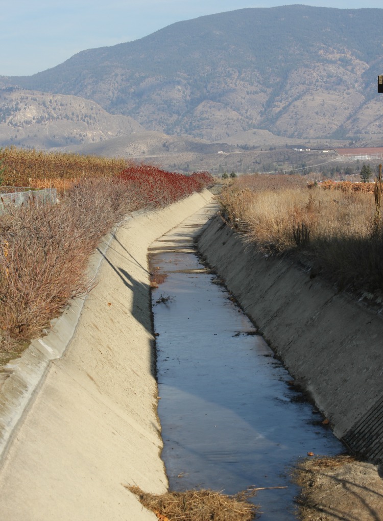 Oliver agricultural water system starts as a diversion from a river at McIntrye Bluff and goes above ground in a ditch for many miles – with frequent dips to large underground pipes. Most of those dips constructed in recent memory for a system that was first totally designed for gravity to push the water through.