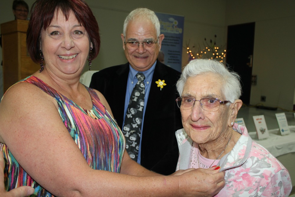 96 year old volunteer Thelma Forty – honoured by the local Rotarians for a job well done. Seen in the picture: President Maureen Doerr and Thelma’s son Tim.