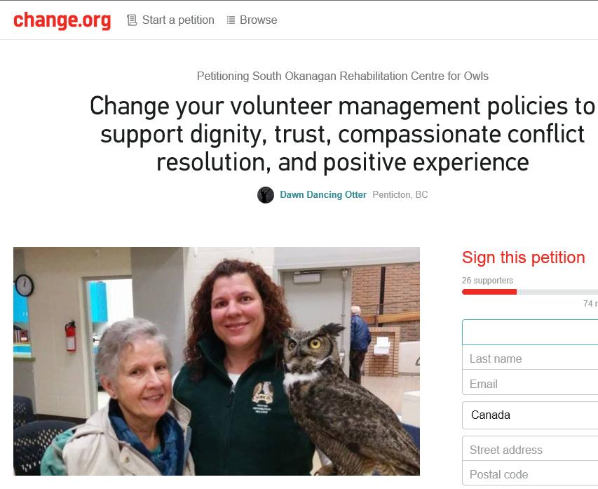 Allegation: Dawn a volunteer of 7-8 years told to stay away (let go) by a newly appointed manager.