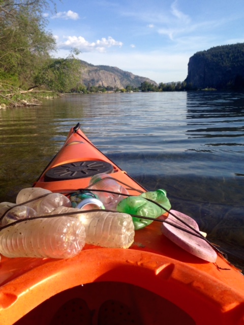 Kayak picks up garbage on and near the lake