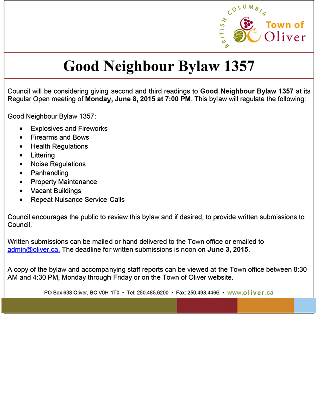 Notice From The Town of Oliver