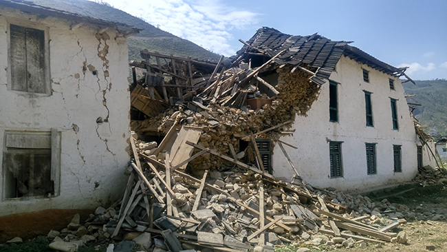 When the earthquake hit Nepal on April 25, the epicentre was about 60 miles northwest of Ramechhap, but it was large enough that it made unlivable 75% of the 45,000 houses in the district. The mud mortar cracked, and the heavy slate roofs caused the walls to crumble. When the second set of smaller earthquakes hit on May 12, one of them was directly under Ramechhap district, and although weaker, it still was enough to cause about 50% of the remaining houses to become unlivable. Altogether, almost 90% of the houses in Ramechhap were so damaged that they will have to be rebuilt.