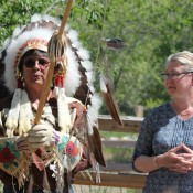 Top Osoyoos Mayor Sue McKortoff with MLA Linda Larson Drummers and singers Environment Minister Mary Polak with Chief Clarence Louie