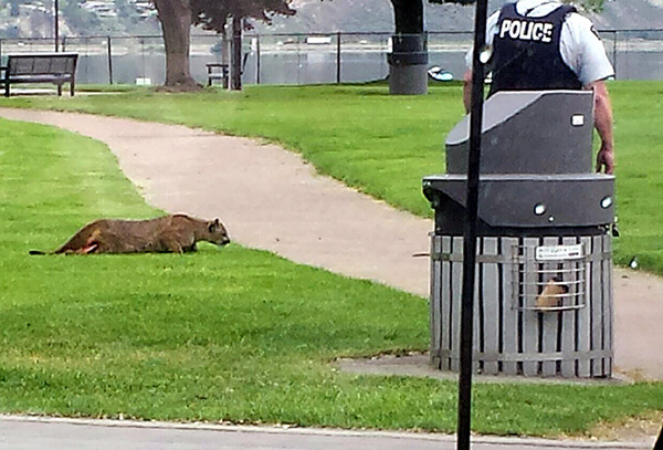 photo Brian Yastremski Discovered in a tree near Okanagan Lake this week – was shot by a Conservation officer with a tranquilizer gun. Once it left a tree and got to the ground he ran off until the drug acted and knocking it out. It was taken away and released far from Penticton.