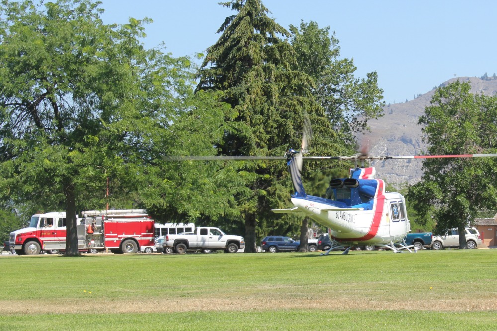 One passenger was flown to Kelowna with a broken femur – but will be fine.