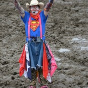 Keremeos Rodeo – 2015 Photo Gary MacDougall The Rodeo clown here is Jayson Charters from Merritt. He tells me he’s the only ‘ticketed’ First Nations rodeo clown in the Country. – Dennis Walker