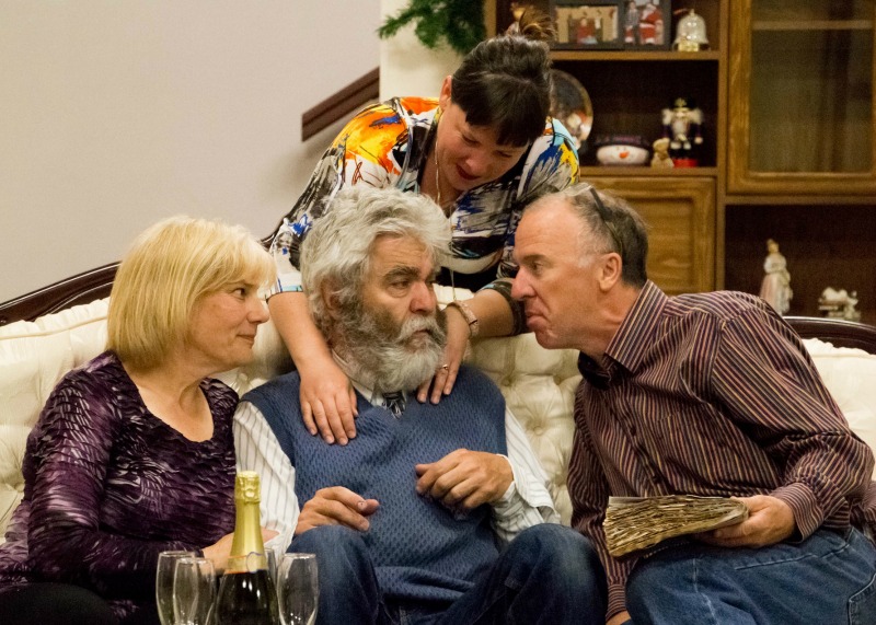 The South Okanagan Amateur Players host and compete in the O-Zone Festival. The cast of Sleeping Indoors by Jim Holt are Diane Gludovatz, Tom Szalay, Trevor Leigh (L-R) and Aimee Grice (standing).