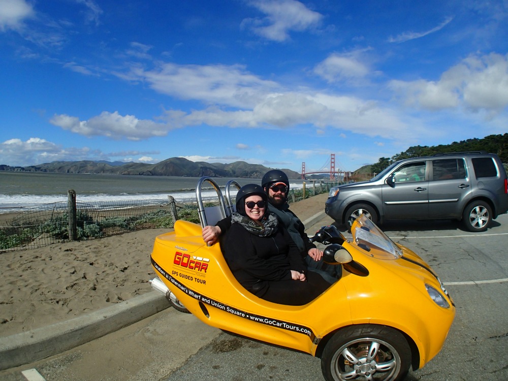 Unique transport in San Francisco March 13, 2017 San Francisco GoCar Tour Ride a three wheeler all over San Francisco as it navigates for you and provides a guided tour. Baker Beach February 2017 David and Krista Miller