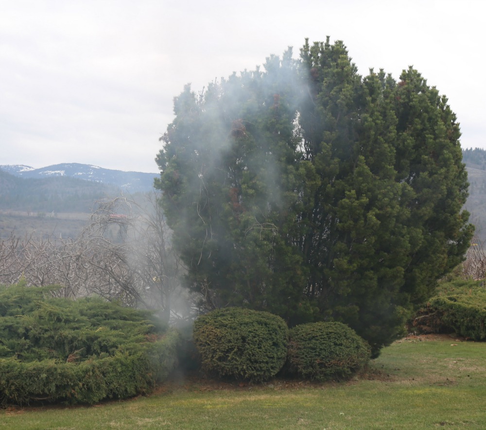 Just before 12 noon Sunday – an outdoor yard and garden burn got away and caught some cedars in the flames.