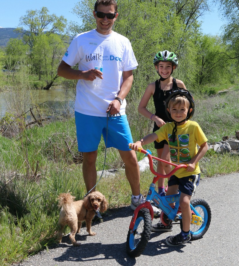 Osoyoos Dr. Jaco Bellingan with Scruffy the dog and kids Maia and George.