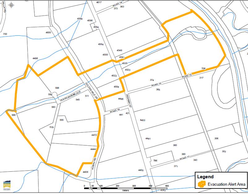 EVACUATION ALERT FOR HOMES ALONG TESTALINDA CREEK
