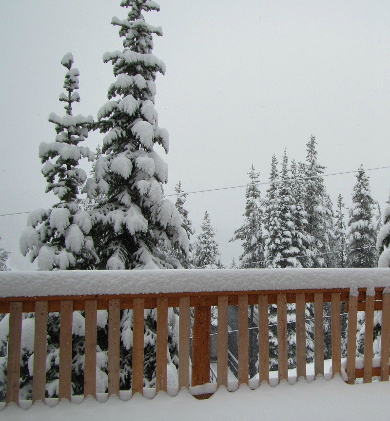 Wet fluffy stuff May 16, 2017 Great turn out for the Community Garden clean-up last night, then I drove home in a blizzard. 20cms new snow overnight, and snowing heavily. Sandra Smith at Mt. Baldy 2 Attachments