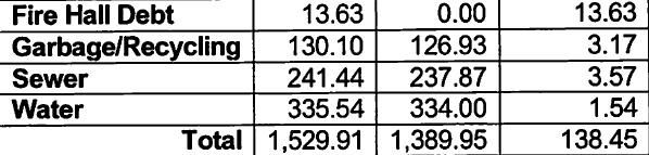 Sewer Rates proposed to increase by $3.57 annuallyfora single family residence. The annual cost fora Single family residence will increase to $241.44 (1.50%) in the Town and $334.44 (1.08%) in Area A. This is a $20,400 increase in revenues and is needed to maintain the same level of funding available for capital projects.