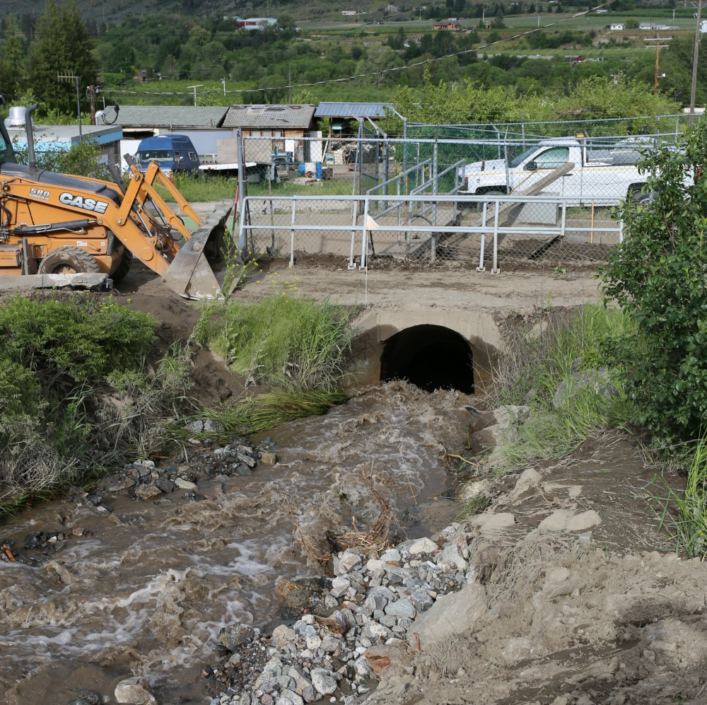 The Town of Oliver is currently cleaning the debris that flowed into the canal at Road 7, from Tin Horn Creek, and from Hester Creek, at Road 11. Crews and contractors are clearing debris at the canal and at the outfall near the Okanagan River at the end of Road 11. Crews are also watching the creeks and continuing clean-up with excavators, backhoe, and hydro-vac trucks.
