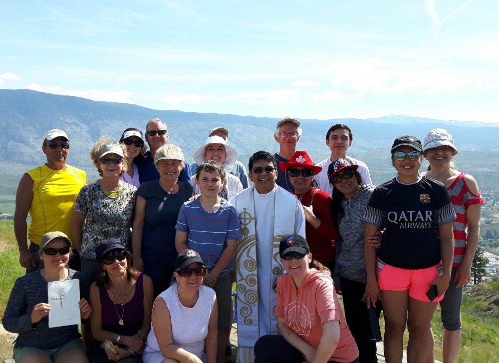 Twenty one parishioners of Christ the King Catholic Church spent their Monday morning holiday hiking to the top of Oliver Mountain (Wilson Mountain?) to enjoy the weather, admire the view and celebrate Mass.