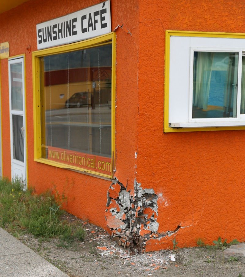 RCMP report: Single vehicle accident, minor injuries to driver, vehicle turning into 7-11 parking lot, hit gas pedal instead of break pedal causing car to accelerate into Sunshine Cafe building.