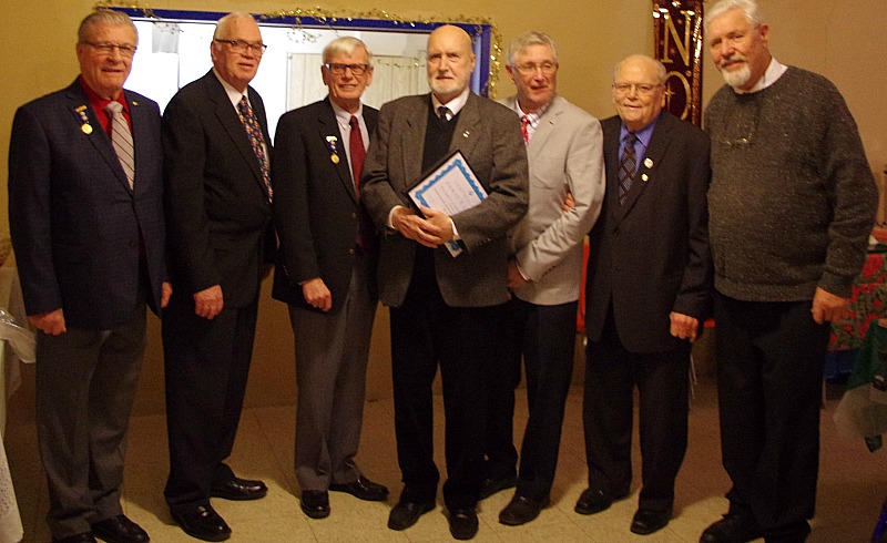 The large white vans with the Cancer society’s emblem of a daffodil and Masonic emblem of square and compass, can be seen daily on it’s journey, which operates from Osoyoos to Kelowna. The patients have treatments that last from 10 days to 6 weeks, depending on the type of treatment they require, so this free service is well appreciated by those who are transported. Arranging daily drivers is quite a chore and Erwin has co-ordinated the Oliver drivers since the vans were first used in this area, over twenty years ago. Erwin, centre of photo, was presented certificates by Kelowna head co-ordinator Dick Audy, 3rd from left and Chuck Guild, master of the Oliver Masonic lodge, 2nd from left. With them are other local cancer car drivers. The van drivers are usually masons but any person can volunteer to drive the vans. Anyone needing this free service will have arrangements made for them at the Kelowna Cancer Lodge, when treatments are being arranged.