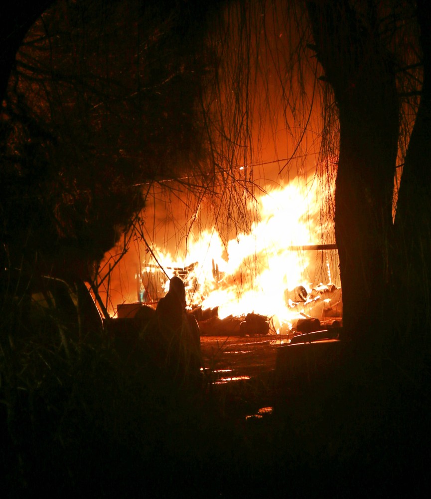 Wood structure described as a “man cave” fully engulfed.