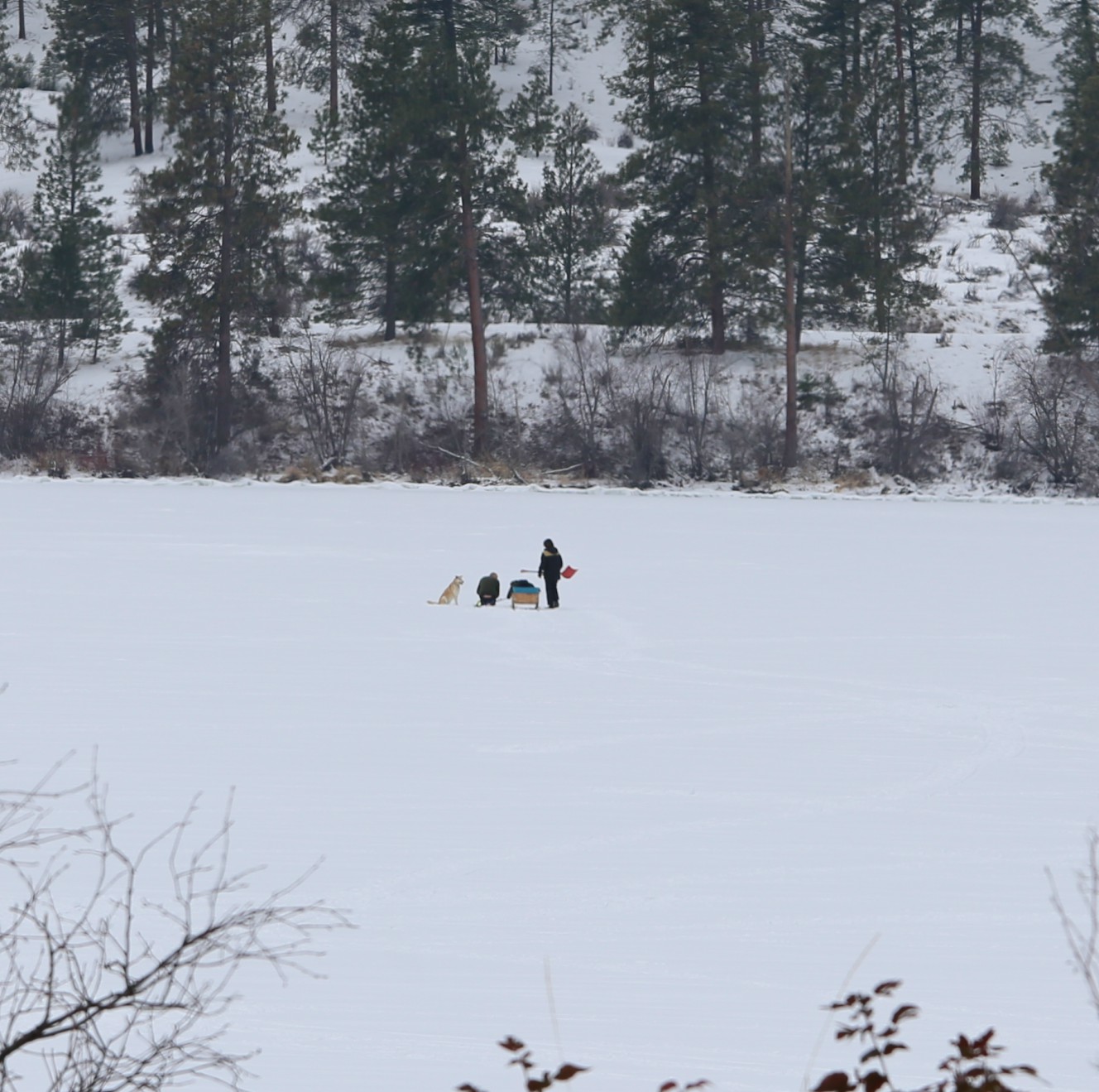 On ice – in the distance – lonely……… but not with companions February 16, 2019 Large format Too far away for much detail Vaseux Lake Saturday
