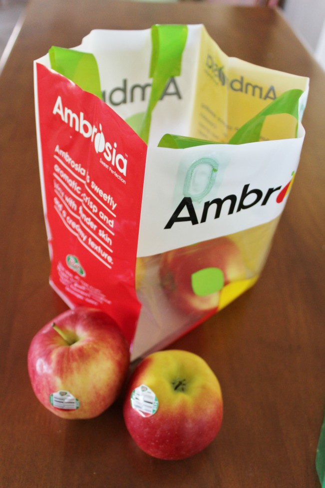 We were shopping at Gelson’s in Rancho Mirage, California. Gelson’s is described as a “gourmet food market and deli”. There was a very nice display of these apples and of course, I had to buy a bag!! They cost $4.99 (US) a pound. Do you think they were picked and packed in Oliver???