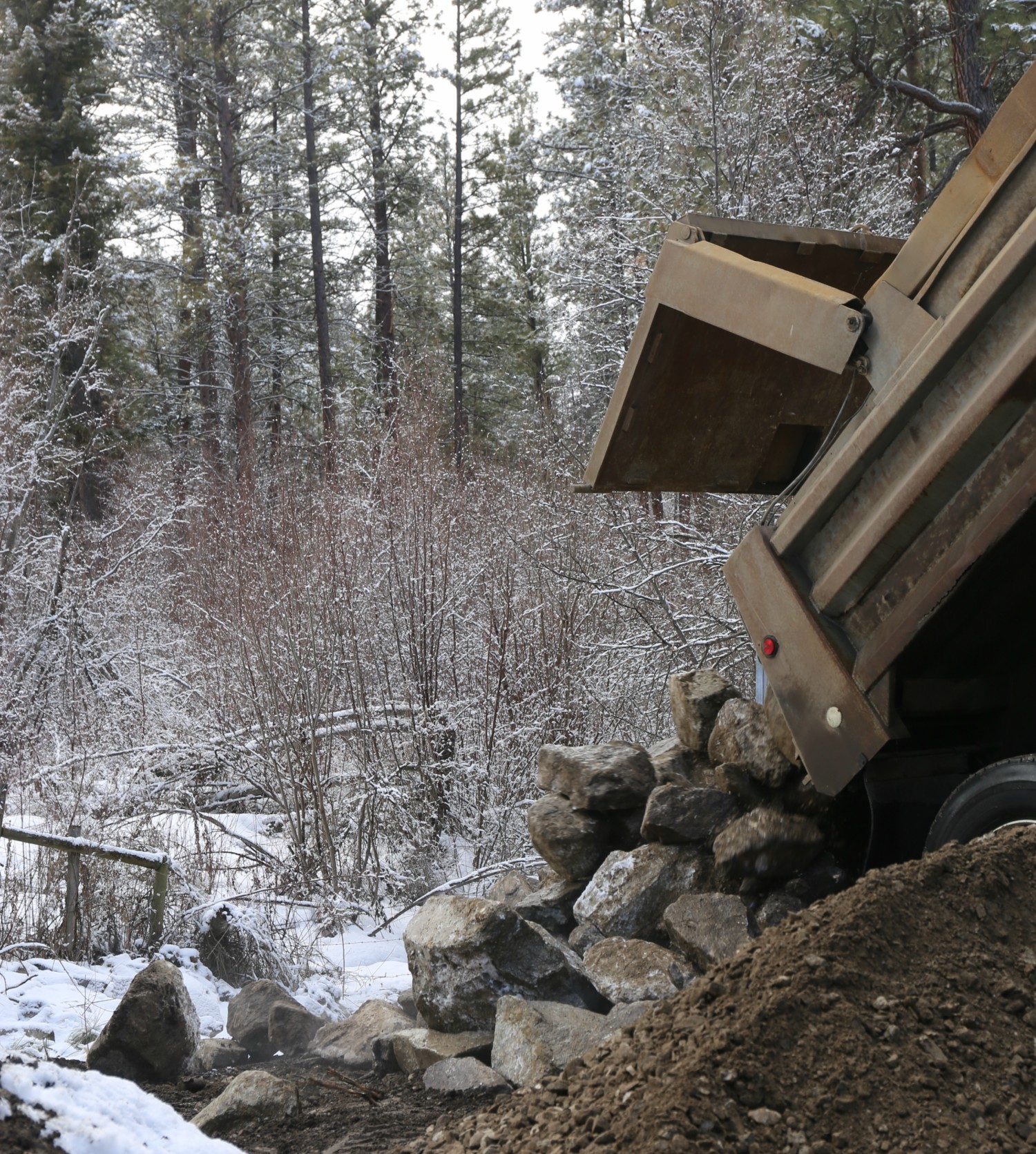 Secrest Hill Rd and Willowbrook Rd open – flag persons on duty March 8, 2019 V-Line delivers rip rap to Victoria Creek culvert project – date of completion not known.