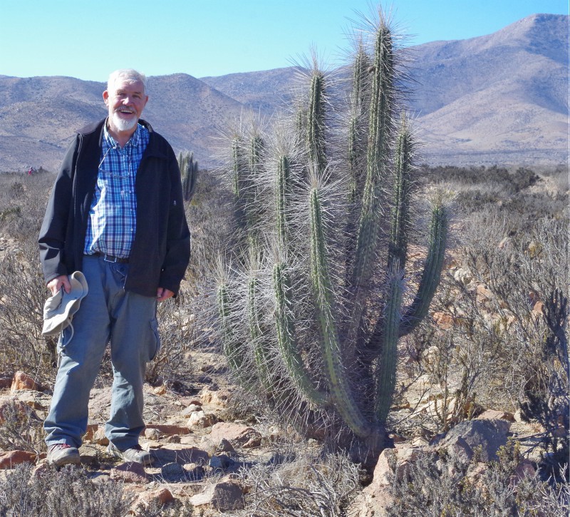 As you can see in the picture of me, the rocky terrain, large cactus and blue sky.