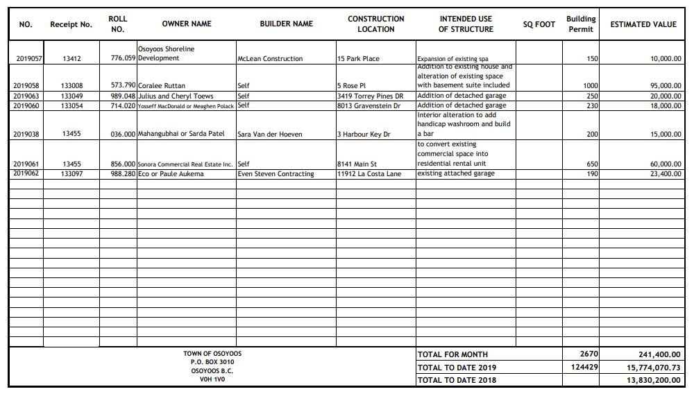 Analysis: The amount of building in Oliver or Osoyoos goes up year to year at different rates depending on larges projects like a new Hotel in Oliver or a new Building Supplies outlet in Osoyoos.