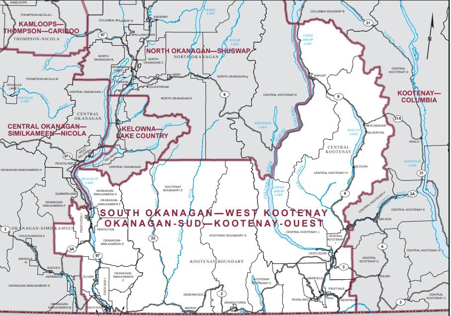 Did you know the riding that Oliver is in – South Okanagan West Kootenay extends northward at one point and hits Nakusp on the upper Arrow Lake – about the same latitude as Vernon