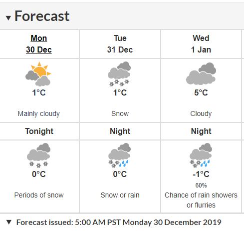 Start new week, new year with clouds, rain or snow