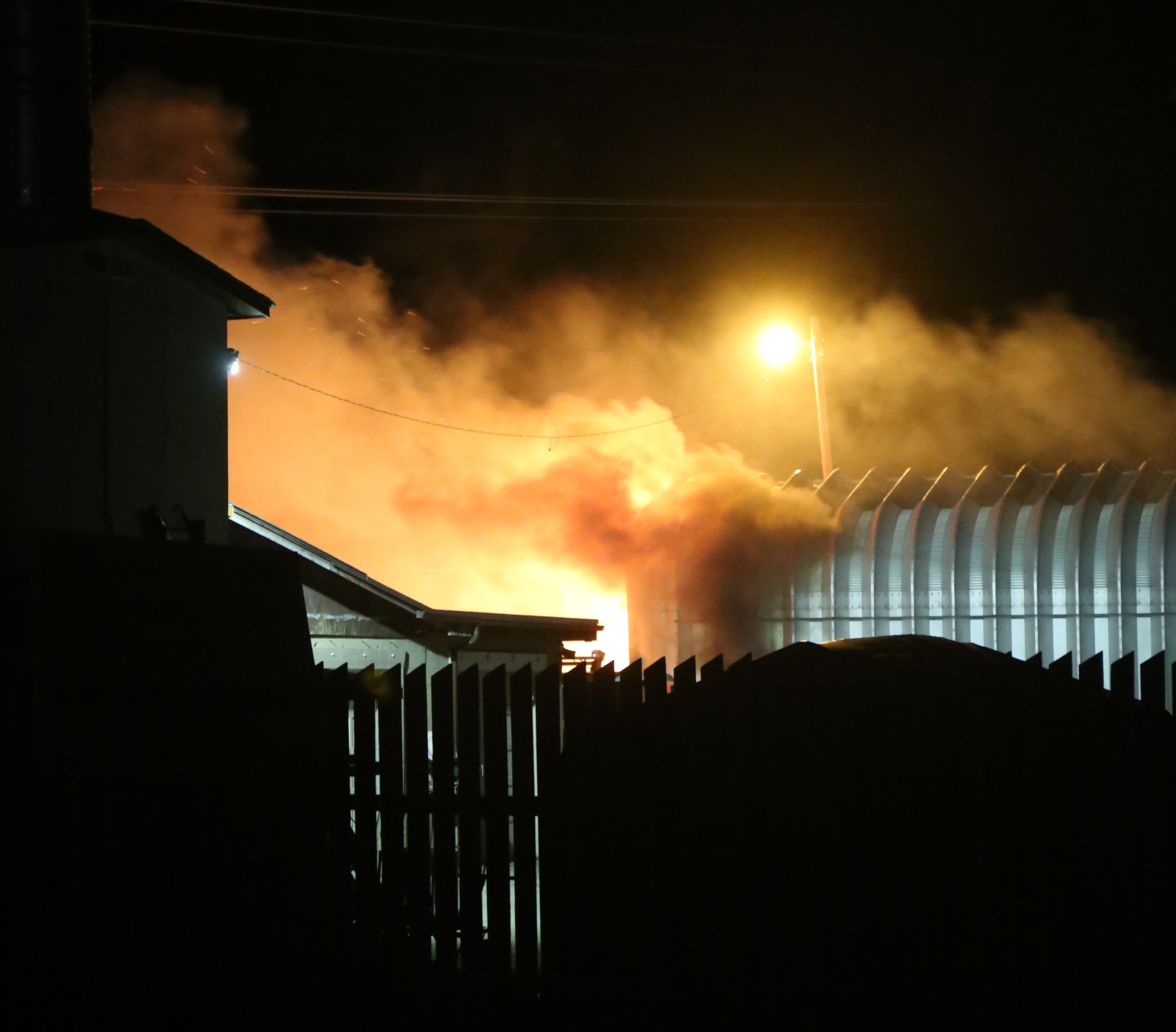 The fire did not spread to the main building. A lot of smoke in the dark sky