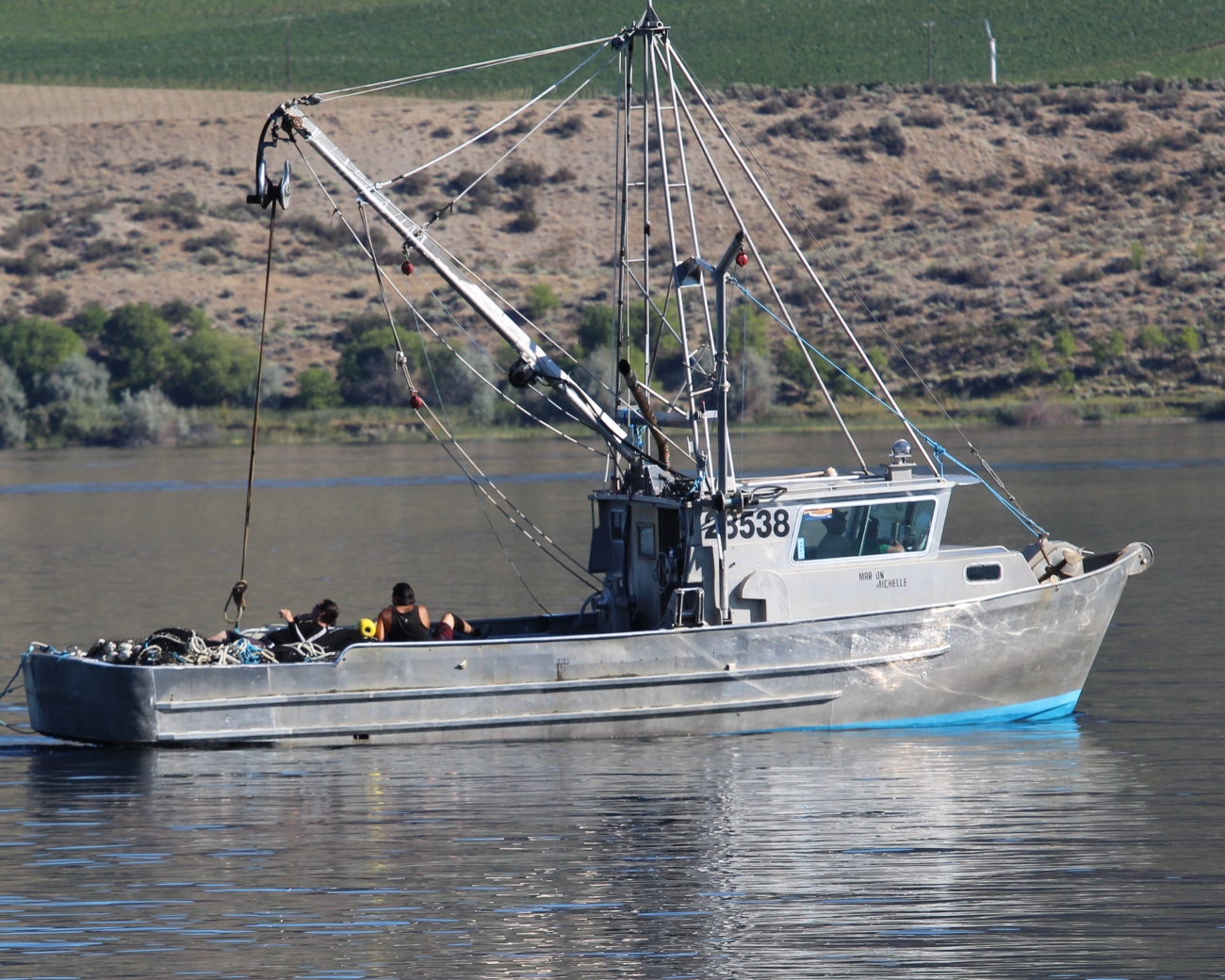 ODN was told by one that the craft looked out of place on a recreational/tourist lake – but this year many fishing boats in evidence on the north end of the lake where the fish wait for the right time and temperature to head north and procreate the gravel bottom of the natural river.