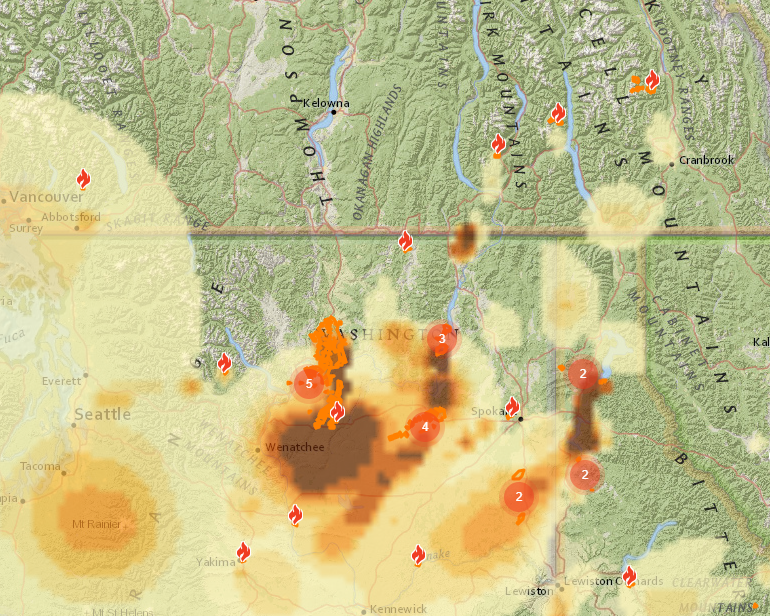 Chest hurt? – hard to breathe……. September 8, 2020 Picture of smoke to the south of us in Washington State Pix credit Fire Smoke. ca