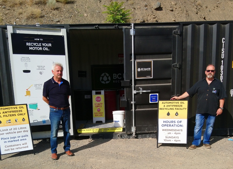 Modified shipping containers have been installed to allow for the safe drop off of used motor oil, oil filters and anti-freeze. The containers, supplied by the BC Used Oil Management Association (BCUOMA) provide spill containment and secure storage.